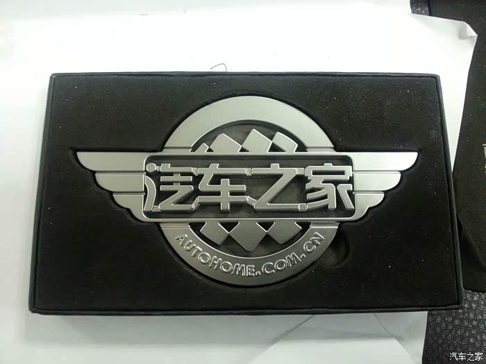 汽车之家发送的金属质感的车标!还有十周年的纸质车标!后期补发照片吧!