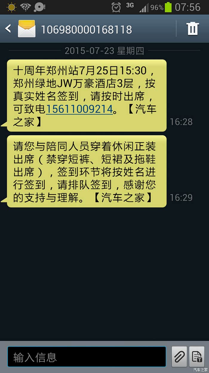 汽车之家给我发送的邀请短信。谢谢汽车之家,谢谢奇骏论坛!