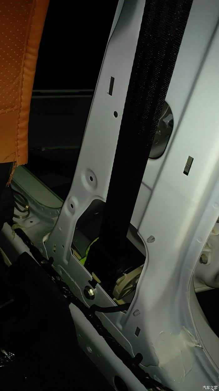 拆后门需要拆B柱装饰板,把这个螺丝松开才能拿下