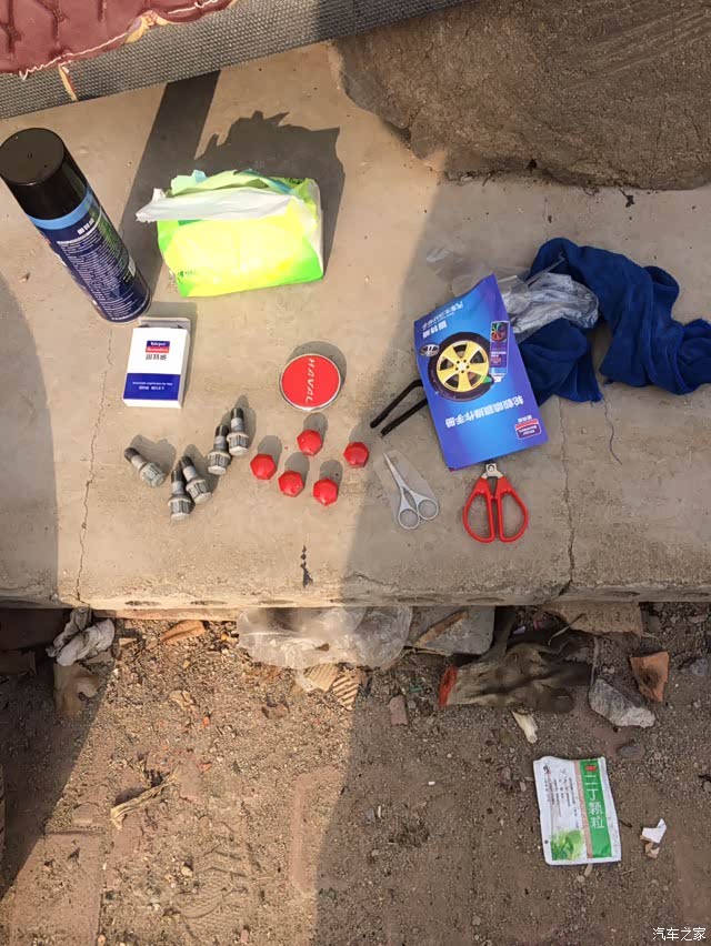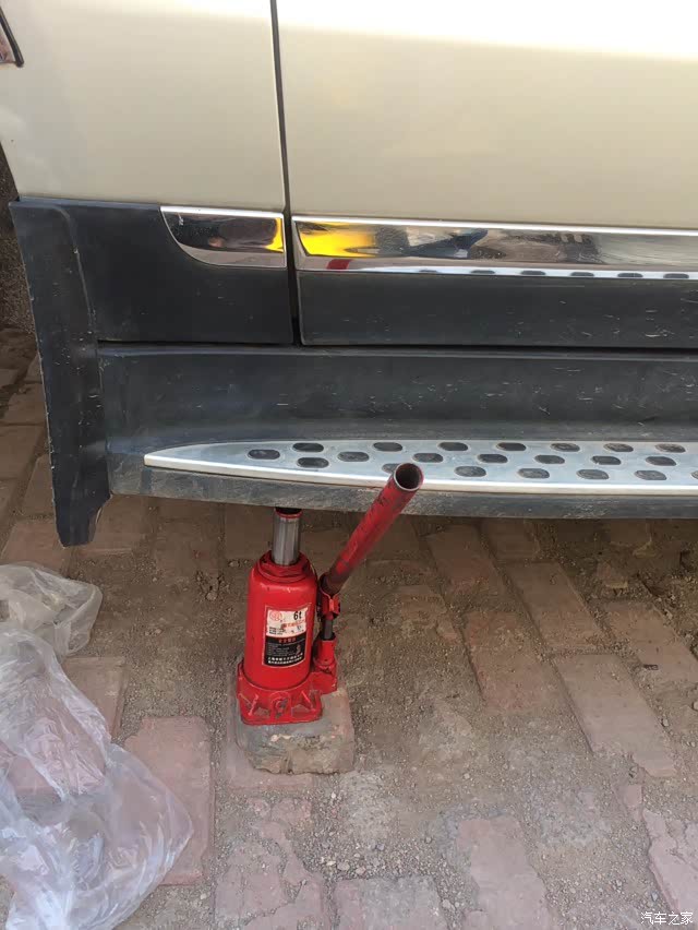 第一步,先找个平的地方把车停稳,用千斤顶把车支起来,最好找个风和日丽的下午,最好要没有风……