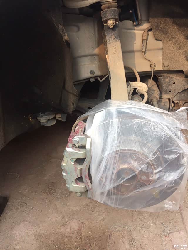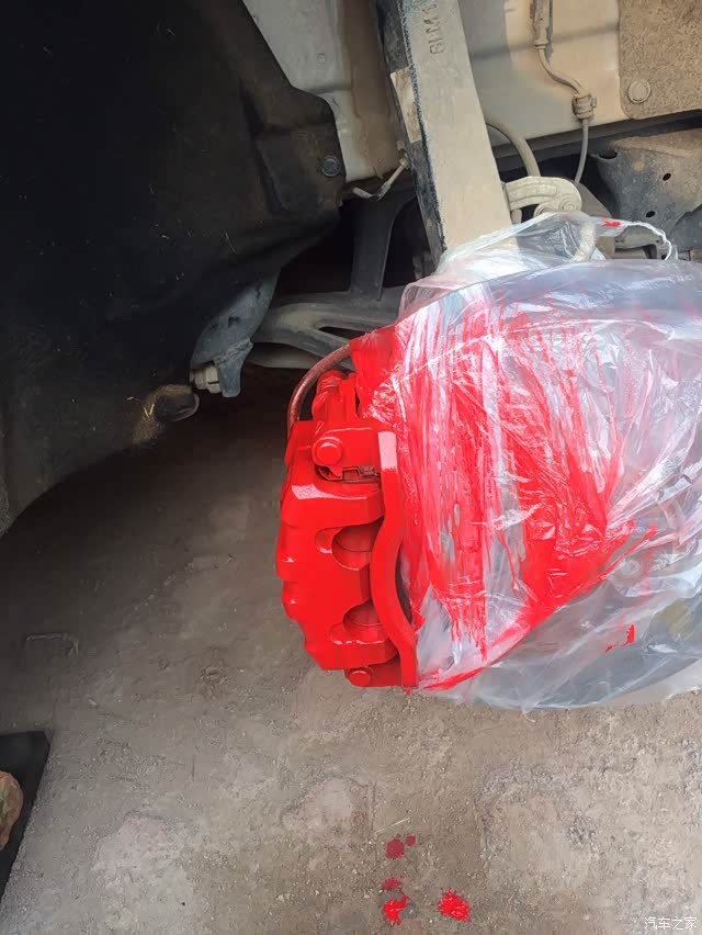 顺便把卡钳也喷了,用塑料薄膜把刹车片包起来,以免………误伤