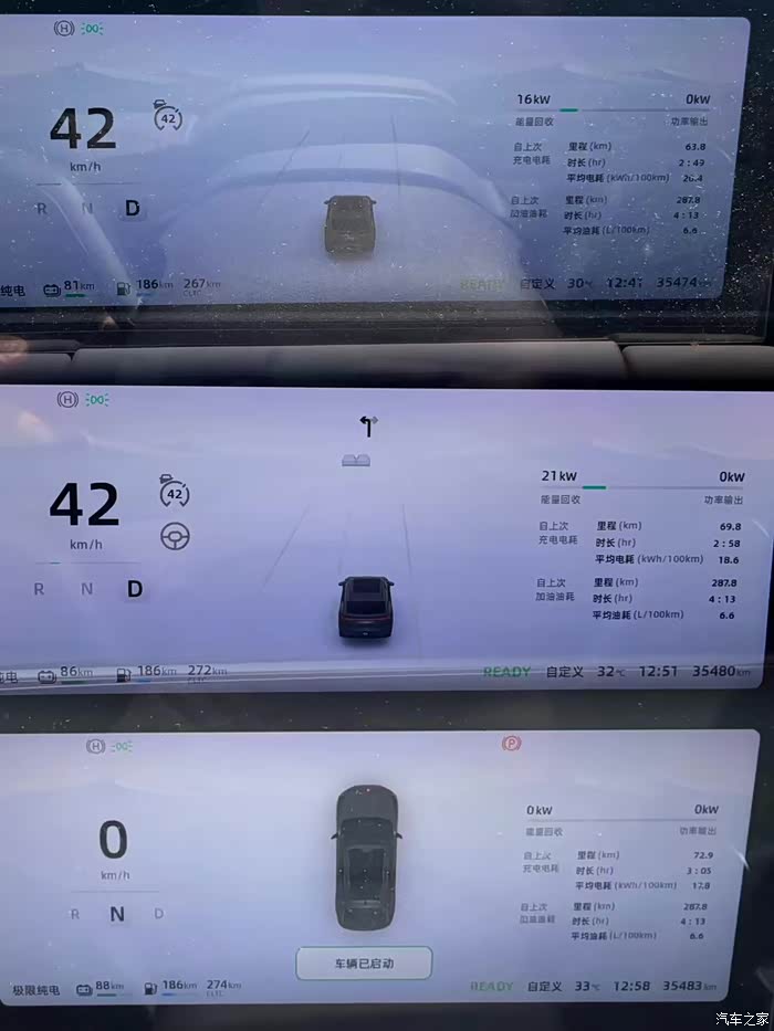下山路段,第一次体验到了C11强大的动能回收功能,表显纯电续航79公里出发,一路持续能量回收13KW左右,到山下表显纯电续航88公里,也就是实际行驶14公里下坡路段,续航反而增加了9公里,真是离了大普!