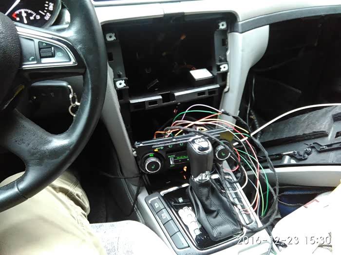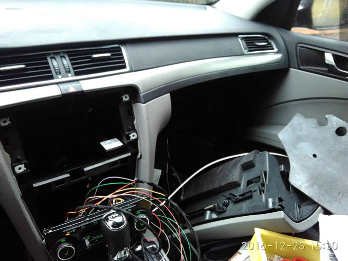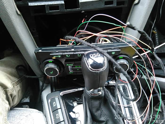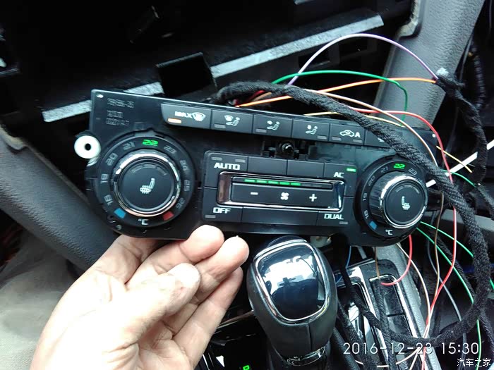 然后开工、拆!拆!拆!拆导航面板、正驾驶手套箱、副驾驶手套箱、u型槽遮雨板,穿线、跳针,匹配、测试还原。自动空调的功能除了双区之外完美实现