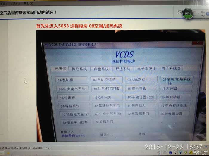 5053修改编码,最后读取高级测量值----“空气质量传感器状态”,用气体打火机不点燃,直接对着传感器,传感器状态值发生变化,鼓风机入口处的内外循环的风门自动切换,OK一切成功!