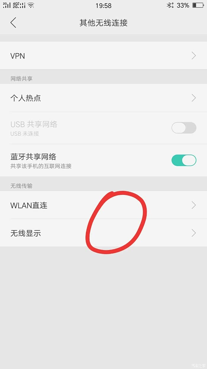 打开会出现,wifi直连和无线显示