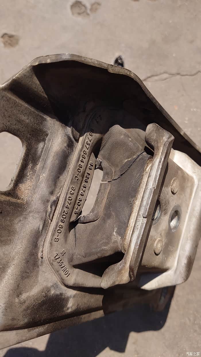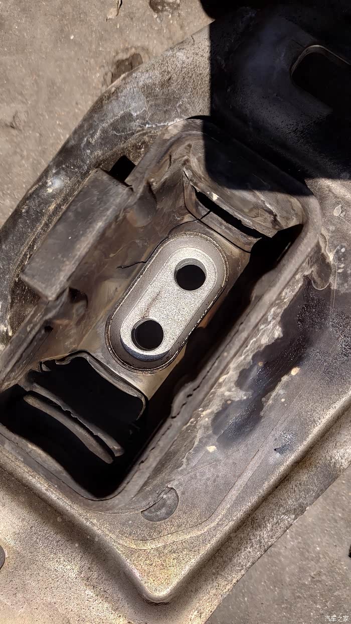 主驾变速箱这边的机脚也烂了,直接开裂。法系这个橡胶塑料件质量真差,进口的也不行。。。。。。