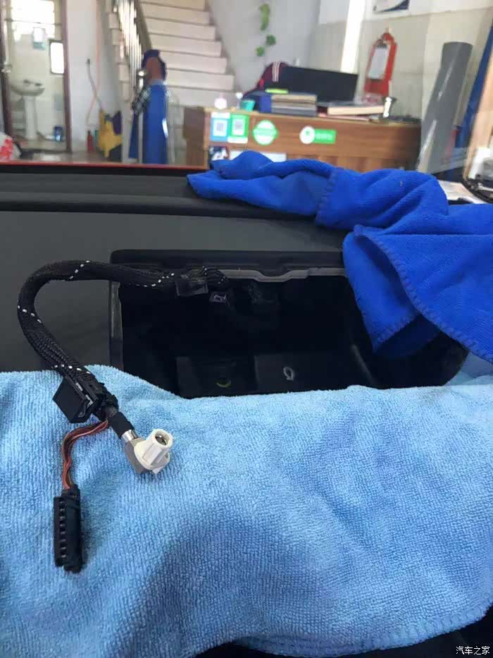 装好摄像头后,对插线束,慢慢引过去,用扎带跟原厂其他线路固定,然后缠上绒布胶带防治异响。