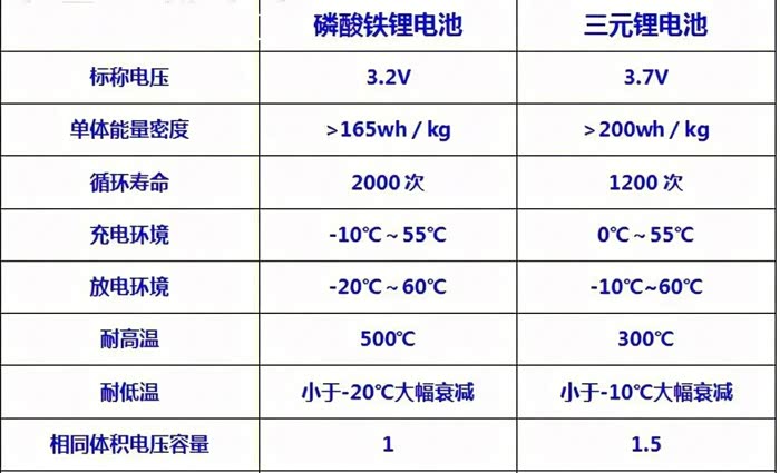 最后是使用寿命:磷酸铁锂电池的循环寿命更长,一般可以达到2000—3500次,而三元锂电池的循环寿命一般1000-2000次左右,由此可知磷酸铁锂电池的使用寿命更长。
