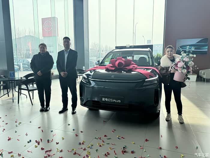 今天交车时,店里还精心准备了交车仪式,鲜花、气球,仪式感直接拉满。能这么顺利买到心仪的车,真的太开心啦!以后有朋友买车,我一定首推蓝电E5 PLUS,安利这家服务超棒的4S店!