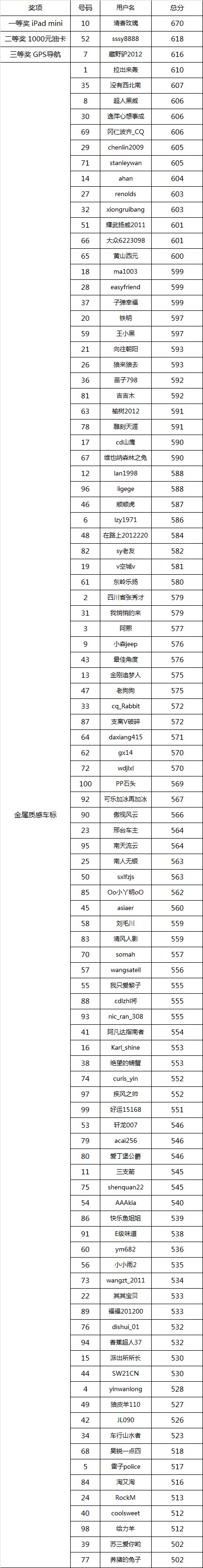 前三名均有汽车之家特制纪念奖杯一个