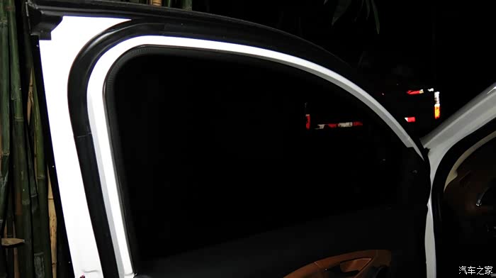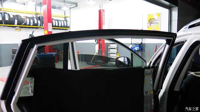 安装完成看起来也是有一部分没有遮掩住,露出大约四分之一的车窗玻璃。