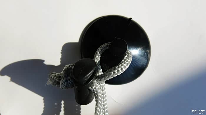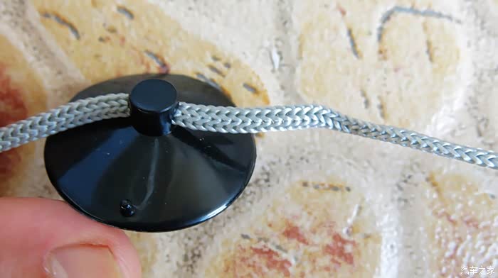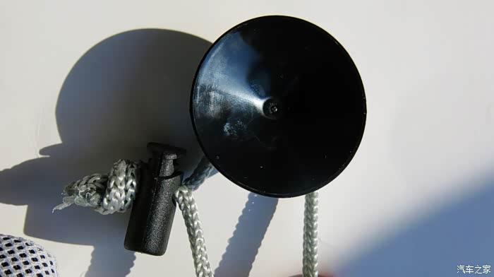 吸盘很厚实,好像是硅胶材料,手感质量很不错。吸盘后面有孔,拉住遮阳挡?绳索从这个孔穿过,绳索子的做工细腻,非常考究。