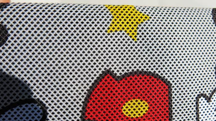 我手感面料还是很不错的,浅色印花的一层采用是灰色网格料,配了米奇元素图案印花,很亮眼也耐脏,摸起来很柔软质感很好,变形不大。