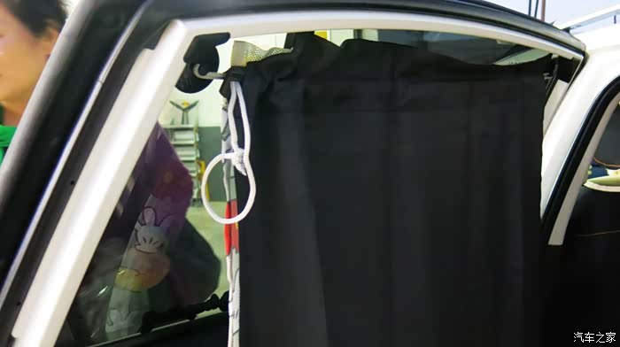 为了留出查看倒车镜的面积,可以把窗帘往后拉。但是前窗这样遮盖起来,我感觉开车很不习惯的。