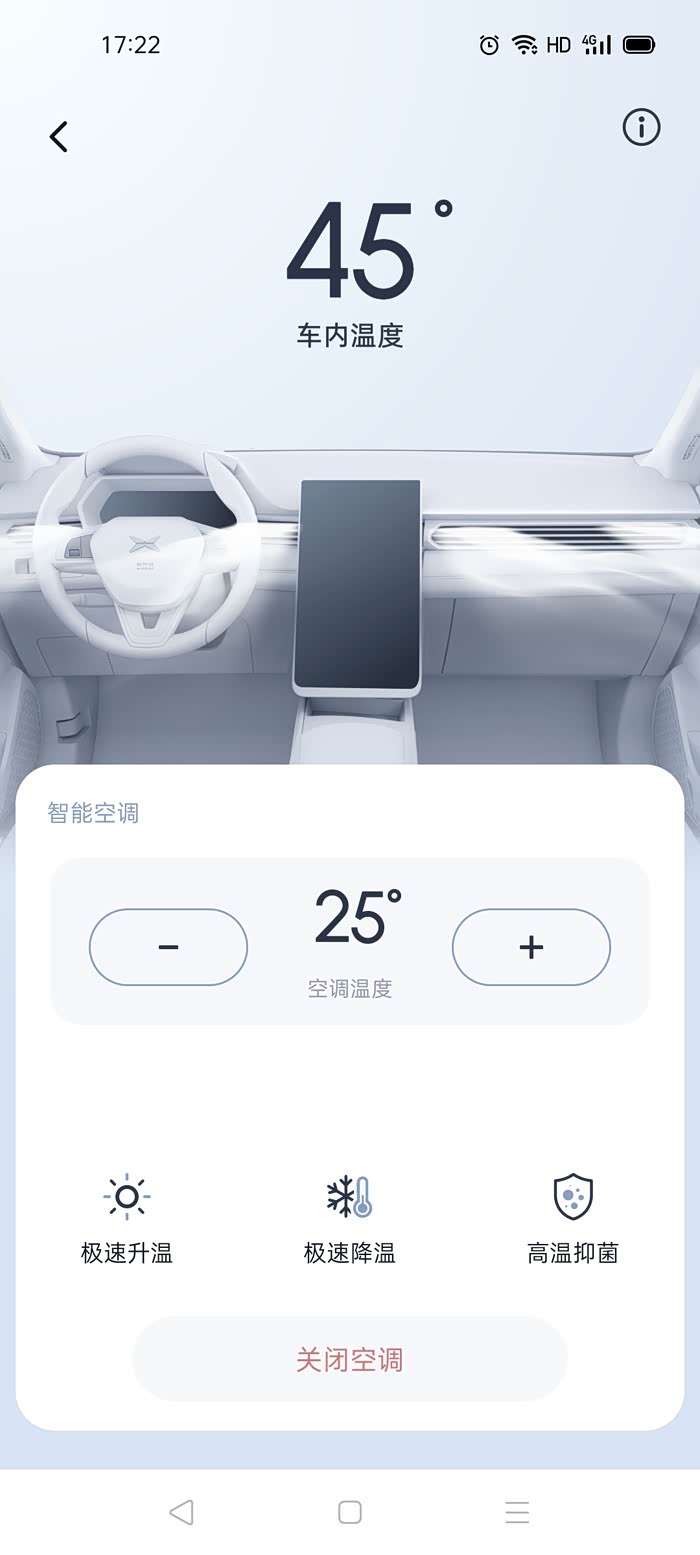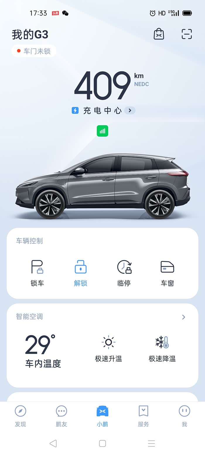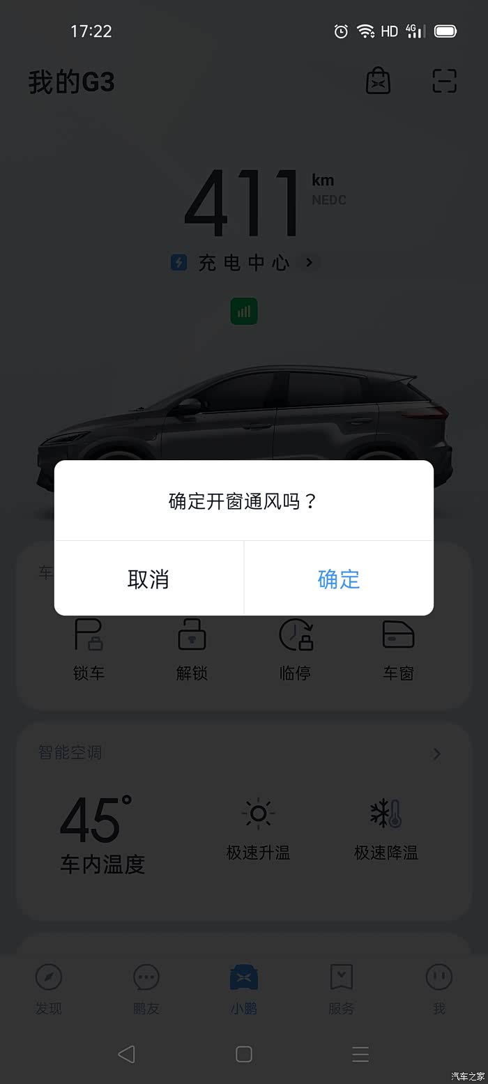公司楼下有停车位,但不是室内,没有大树,也没有遮阳蓬。胜在我家G3有这项功能,可以在APP提前打开空调。相信大部分新能源汽车都有这功能,但对原来开惯油车的大叔来说,这一项功能实在太方便。