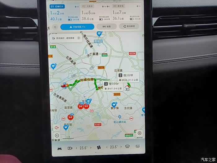 提供三条线路可选,信号灯最少、大路多、最省电,一般我习惯选择时间最小的,工作一天,下班了,当然想早点回家跟家人团聚,吃晚饭。