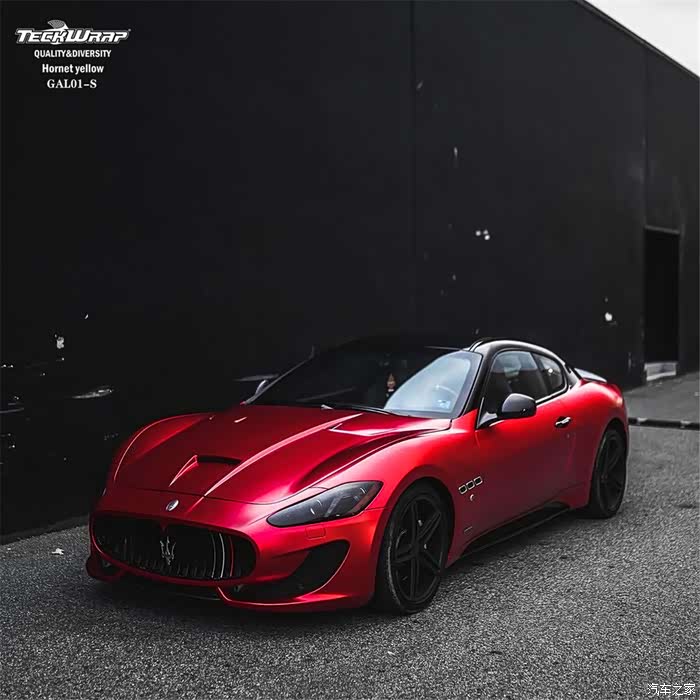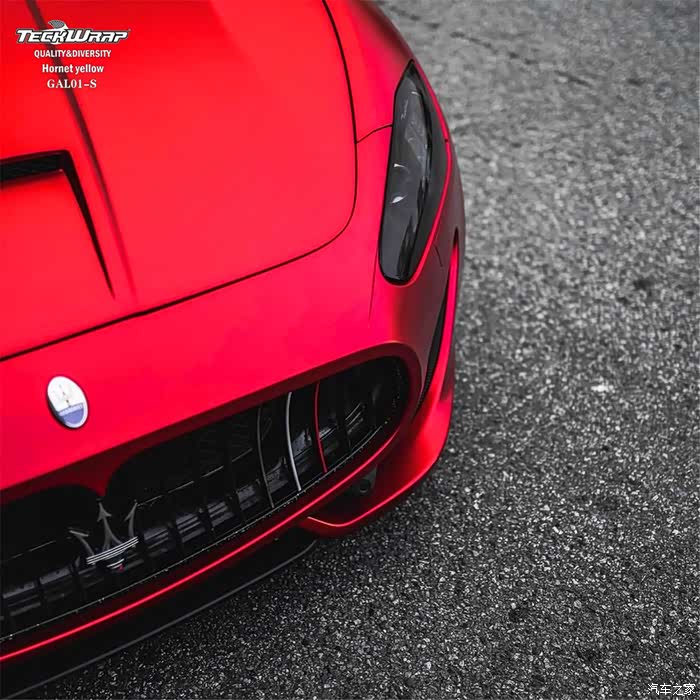 玛莎拉蒂贴秃鹰牌改色膜变大红,高贵优雅发着光