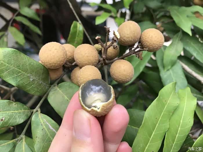 龙眼颗粒圆润。迫不及待咬开果皮,龙眼汁一下子益出来,手指上都粘着甜。果肉晶莹,入口爽脆,回味则是甘甜。回去的路上忍不住买了一大袋回去品尝。