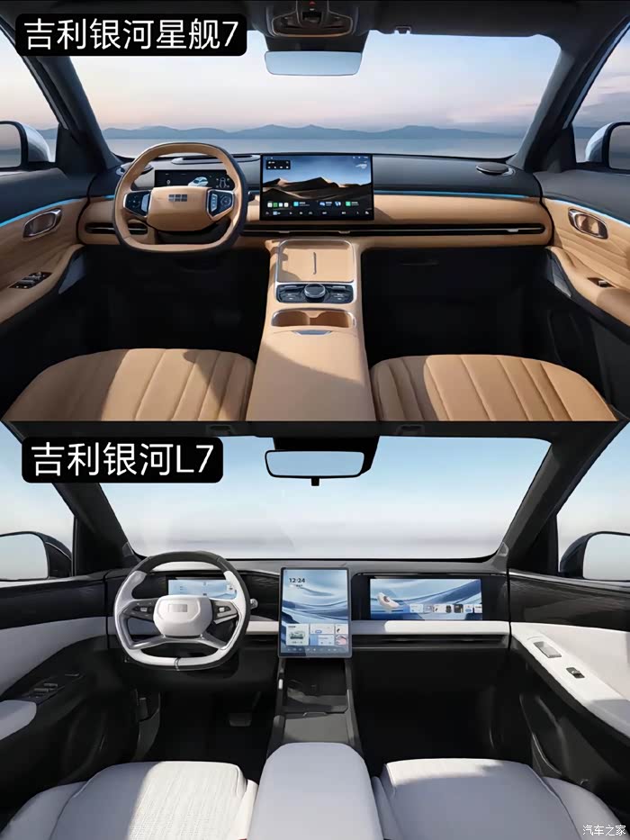 我们再来看看两辆车的内饰,内饰风格和质感相比较而言,星舰7的更简约更细腻,个人感觉更符合现在年轻人的审美。