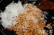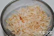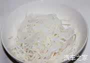 2、萝卜洗净切细,用盐腌10分钟后挤干;