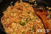 3、放入切好的烧肉 酱油 芝麻油 蚝油 白糖 调味拌匀;