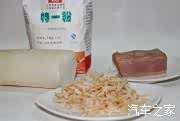 饼皮:面粉、热水。馅料:白萝卜、剩下的烧肉几块切好。