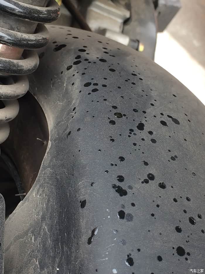 溅到后挡泥板上的油渍