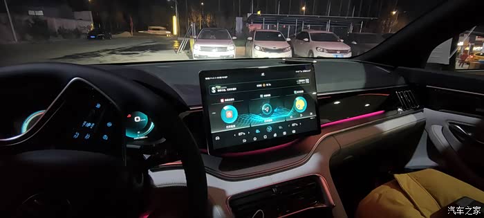 夜晚内饰效果还可以,就是氛围灯弱了一点,中控扶手为什么没有灯带!
