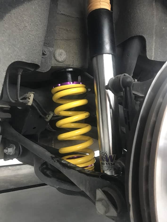 ,后来有一次开得挺快的过了个坑,前轮居然起包废了,当时的想法就是防爆胎真烂又重又贵又容易起包,过了一段时间竟然发现后轮毂裂了,这,,不是逼我改轮毂吗,好吧,咨询了一下朋友立刻订了套bbs19寸的加4条ps4s。改完轮毂之后不改避振真像suv太丑了不能忍,立刻订了套kwv3,车身降低后帅多了