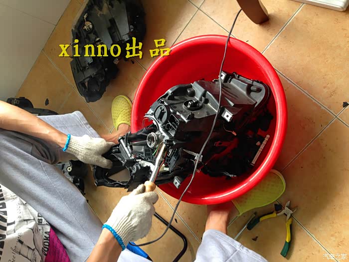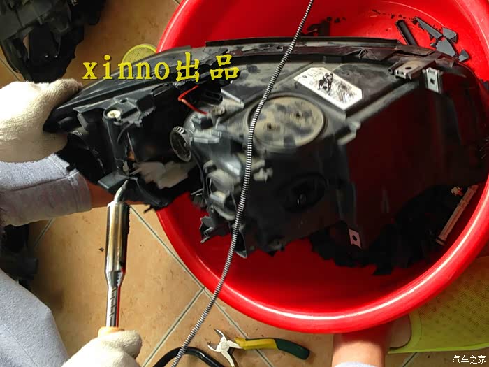 这次次策划改灯也是受了坛里的毒贴影响,要不然改灯不会这么快成型!呵呵……不过,俗话说的好,早改早享受(你要问,这谁说的,我想你猜吧!)。说到这次改灯不得不提这次给我介绍改灯的这个师傅的这个论坛热心好同志——深蓝嘉兴,感谢深总介绍!第二呢,要推广下给我改灯的这个帅哥了(我不是托,只是觉得服务及技术还不错,给大家推荐参考下!),这个帅哥是嘉兴某4S店的技师(具体我就不表了,别影响人家的饭碗!大家心里肯定有数!有需要的可以PM我,我给你联系方式哦!),技术娴熟,态度不错!阳光小伙一枚!呵呵……第三,师傅技术不赖,材料当面拆解,正品有保证,同时质保一年!价格公道!好了,广告到此结束,下面正式作业汇报吧!