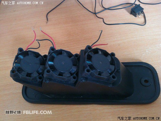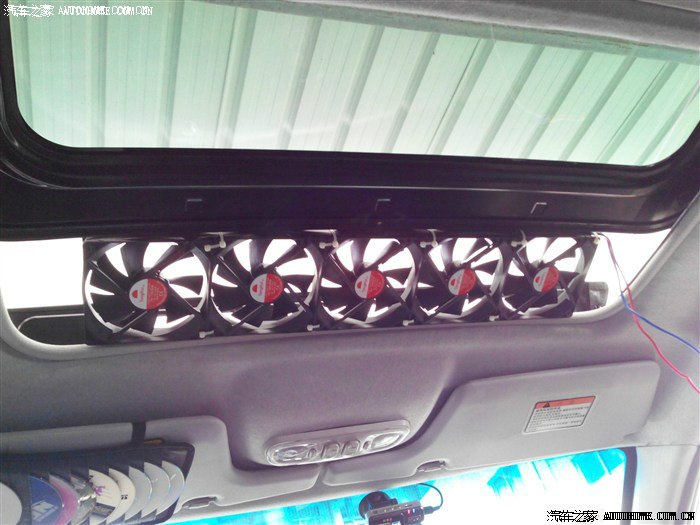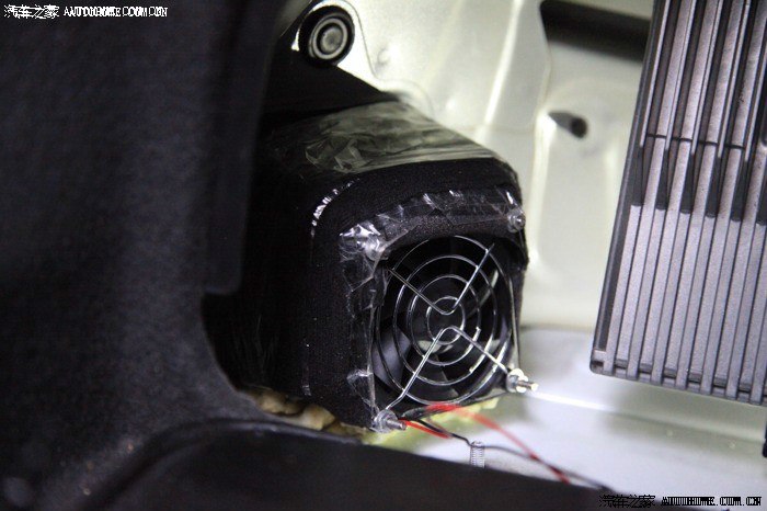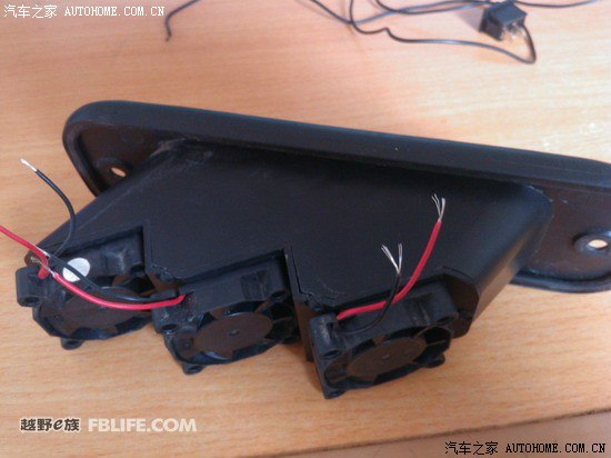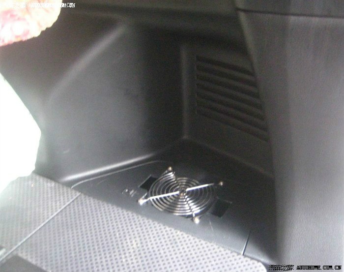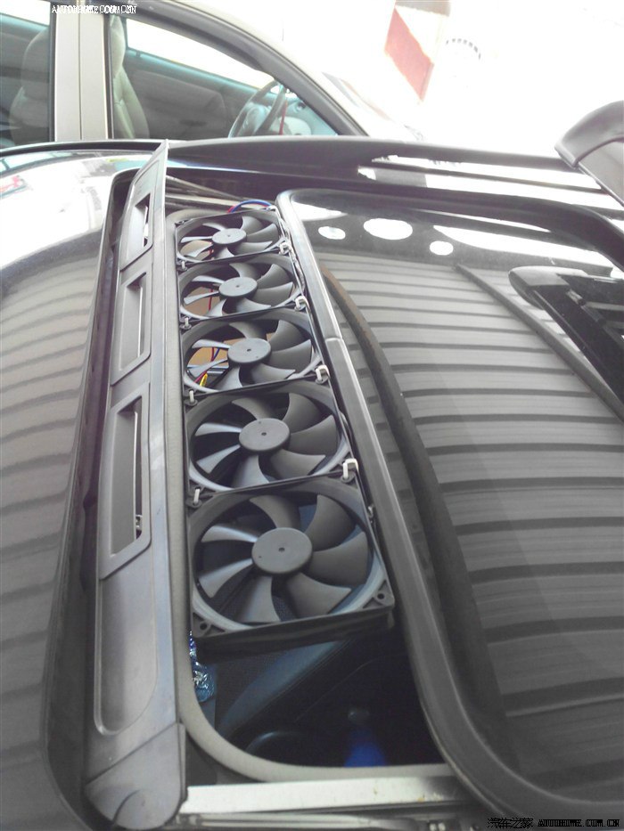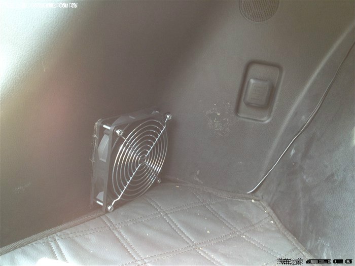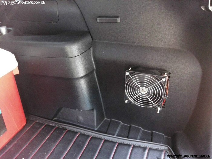 下图的这位车主也是在泄压阀门上安装的风扇。缺点是影响美观。放置物品时还容易碰坏。