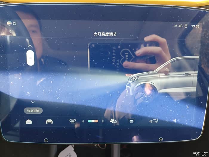 大灯高度调节进来以后,是通过拖动左侧的这个白色按键进行调节,楼主测试后,高度有变化,但是感觉实际效果不明显,所以就一直放下这个位置不再动了。