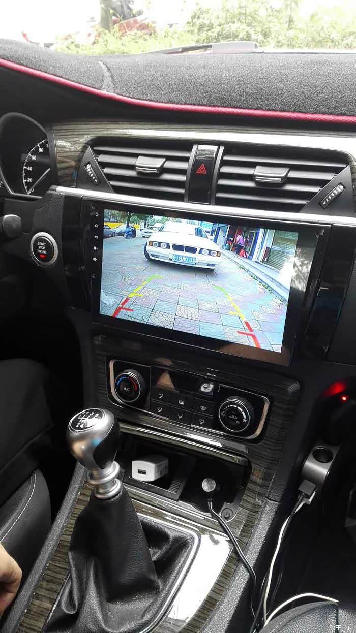 这是装后摄像头,不过这个位置比较小,不会匹配摄像头安装。后来在后盖开启位置的地方发现一个原车转摄像头的位置,完美。不过这个位置被黑盖子盖住了,要撬开才发现哦!
