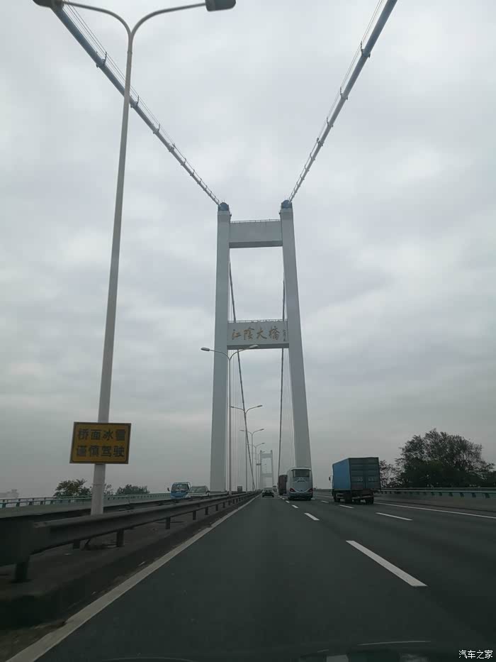 为防止犯困,一天没吃正餐。基本保持2小时进一次休息区歇10分钟的节奏。油耗也从日常的10.5降到了7,第一次一箱油开了600km。连云港灌河大桥,时近黄昏,路程已过半。