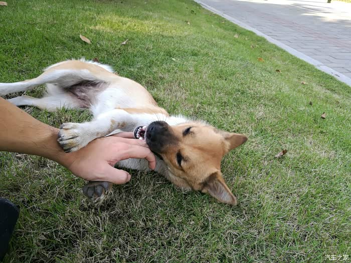 江苏盐城东台休息区遇到的一条小狗,见我就叫还咬我的鞋带。喂了火腿肠,吃起来没完。
