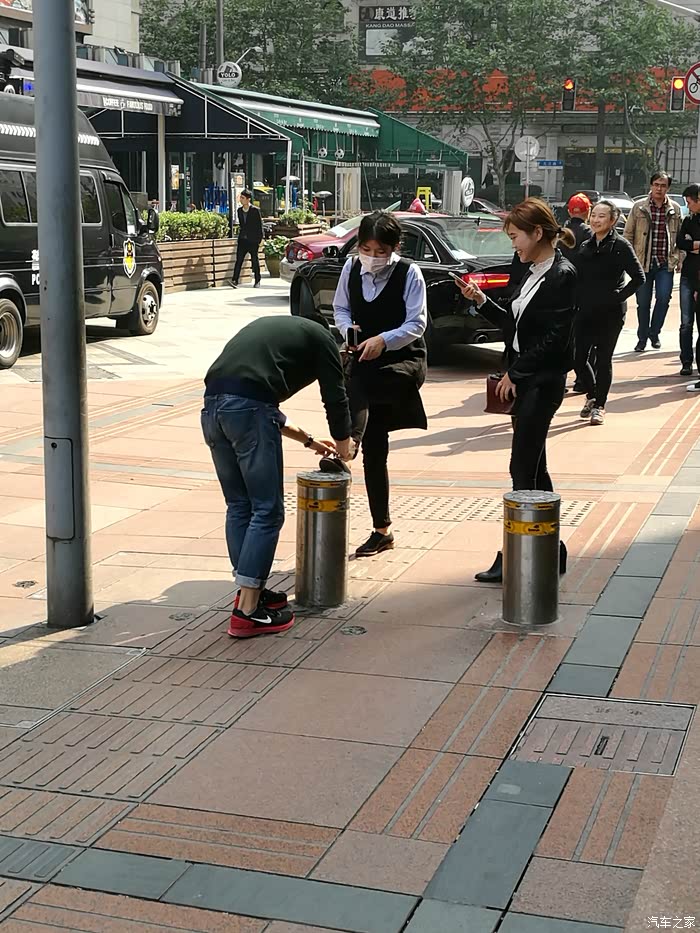 帮女孩系鞋带的上海男人,边上还有闺蜜帮着拍照纪念。