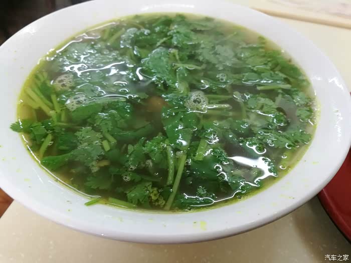 咖喱汤,咖喱面儿+开水+两片儿牛肉+香菜。