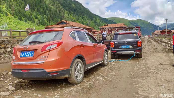 行进途中在经过银恩乡场镇的时候发生一场意外事故,我作为头车,在经过烂路时由于车速过快,判断失误,在烂路上把汽油滤芯挂掉了,造成油管接头漏油,发动机熄火。打电话报保险的时候,连定损员都不知道这个事故地点在哪里,如果等待救援的话,估计要十多个小时左右救援车才能来。还好同行的车友群策群力,大森林统筹协调指挥,梁老师的GS8把我的小5拖出烂路,陈杰钻到车底检查和处理汽油滤芯和油管接头,其他车友都在旁边协助。好在我们车队有泽翁老师的祝福,小5经过临时处理后,又能再次上路了。再次衷心感谢同行的车友们!