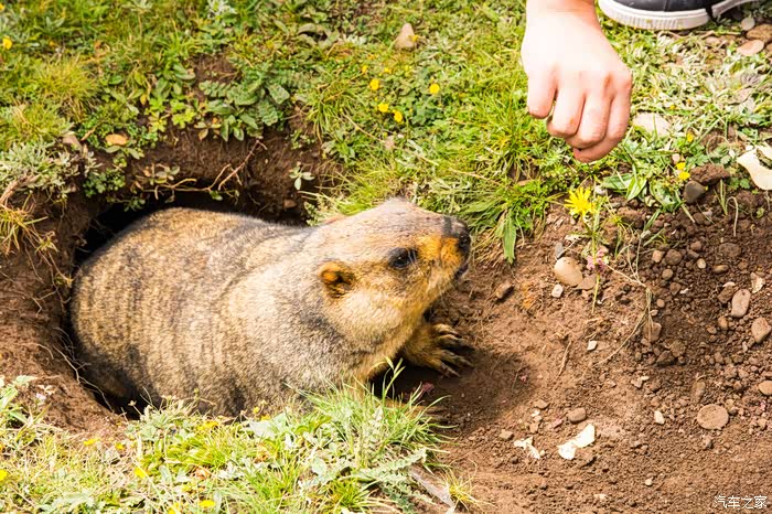 泽翁老师给这次出游的车友敬献了洁白的哈达,让每个车友都得到了美好的祝福。然后带着大家去找寻土拨鼠的踪影。和土拨鼠近距离接触玩耍后,告别泽翁老师踏上回家的归途。