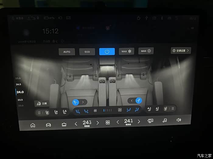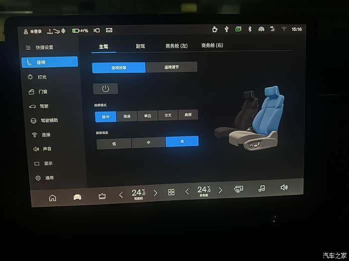 前后四座均可以通过车机来控制,不管是调节还是按摩功能,座椅加热,通风都没问题