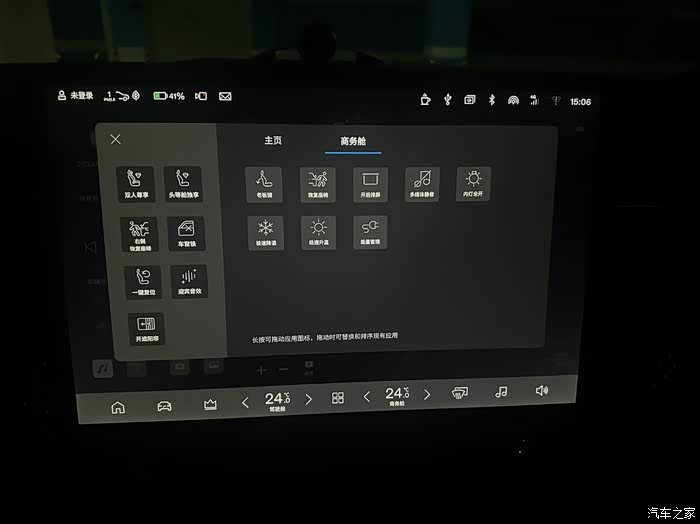 左侧车辆控制以及下面皇冠标志(商务舱)都可以进行个性化设置,常用按键放在首页面。