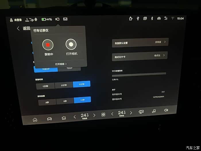 车机的行车记录仪自带内存,可以插入TF卡导出视频