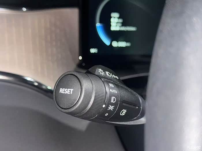 方向盘左侧转向拨杆短按RESET按键可以切换长期/短期行程,查看公里数时间电耗等,长按清零。