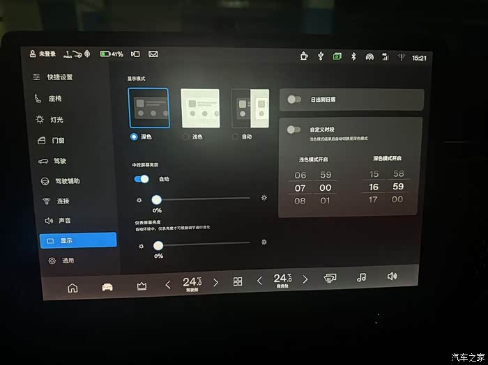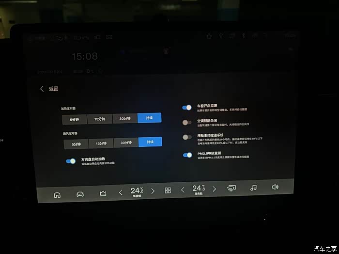 空调界面的设置可以设定通风与加热的时间,一般设置为持续。