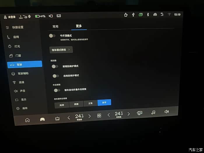 中控屏流媒体后视镜好评,下雨或者夜间使用较少盲区。