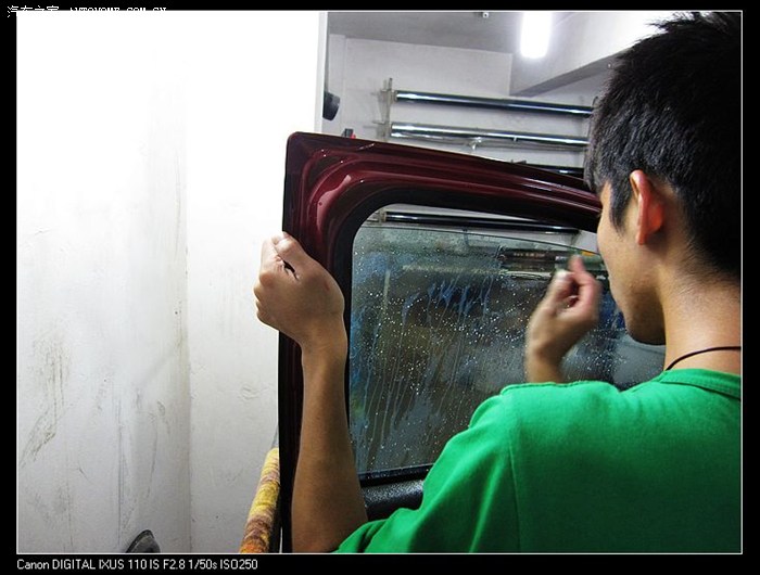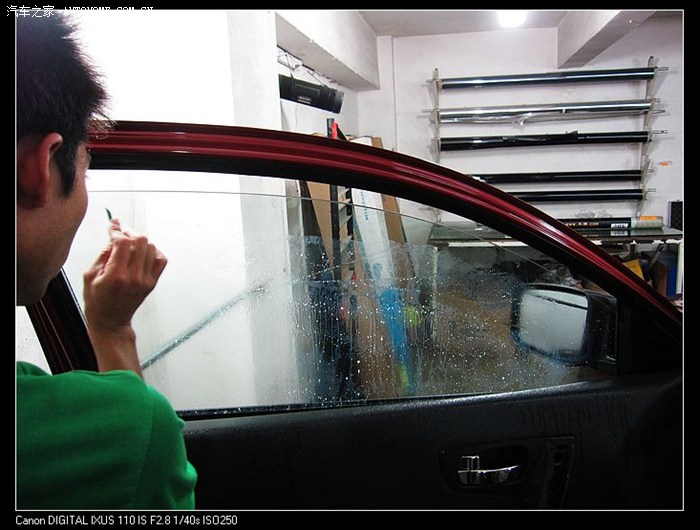 后窗被贼敲破后,换新玻璃,只好全车重新贴膜!!!