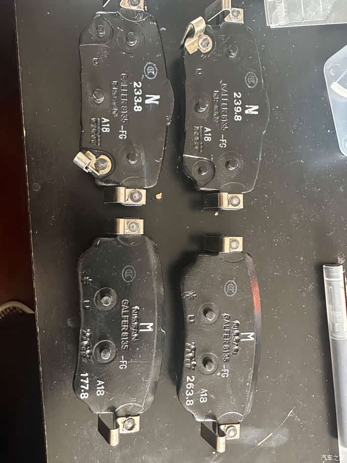 这是换下来的刹车片的前后对比,果然就是原厂的配套一模一样。原厂就是GALFER 代工的,上面的logo写得很清楚。