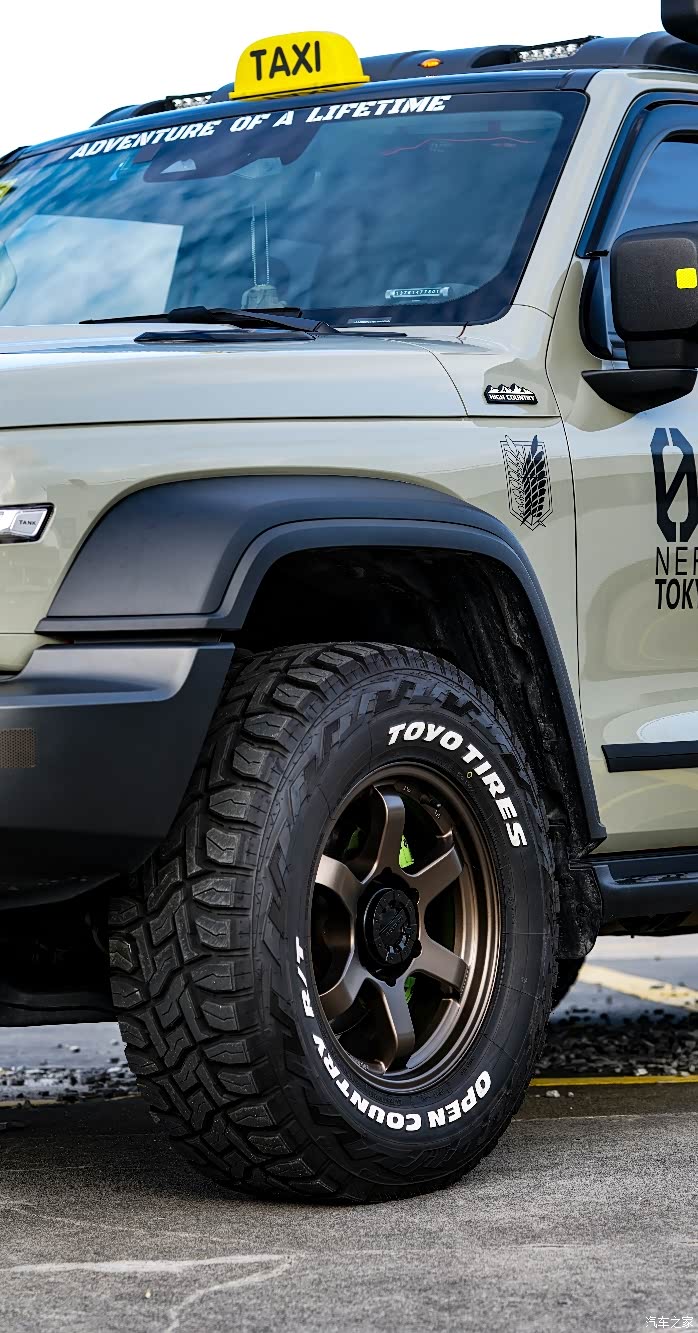 轮毂并没有选择大火的K02,一个原因是太重增加油耗,不重度越野实在没必要,而且K02雨天在城市表现存有隐患,最后选了一个折中的选择。轮毂也没选那种多幅带铆钉的,个人觉得造型过于繁琐。古铜色和绿色搭配一直是复古风格的顶级style,实际效果确实yyds,重要的是,这套方案修改后轮下质量几乎没有增加,兼顾外观和实用性,改装后的综合油耗一直控制在12.6左右,个人很满意