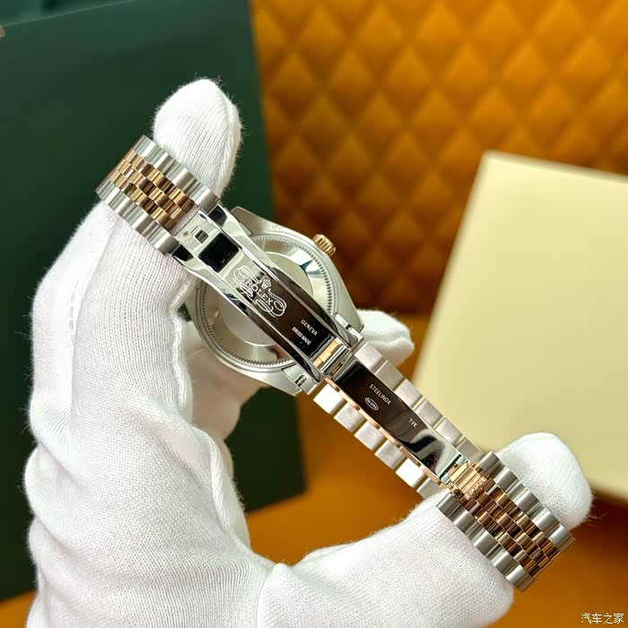 日历字体是对版的,有防反光凸透式放大日历窗,数字都打磨得很精细,方便看日期。开启方式高难度但轻松,锁扣扎实,戴起来非常放心!还有防刮损的蓝水晶玻璃,生活防水。