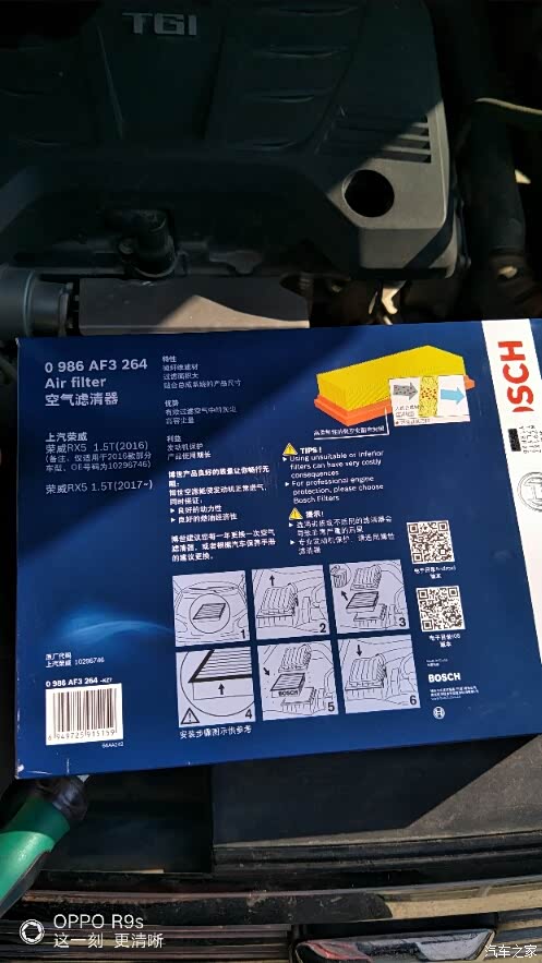 索性回来赶紧上网去买,找了一大圈也找不到合适的,要不就不是专卖店!提醒一下各位车友,我们的RX5在网上基本买的空滤质量都不怎么好,最好去4S店更换!其实车的空滤还是相当重要的!别等以后发动机有问题就麻烦了! 今天刚好买的空滤到了,赶紧去拿回来装上,感觉和原厂的差不多,买的博世在官方店应该是真的。希望过年跑长途不会再变形!